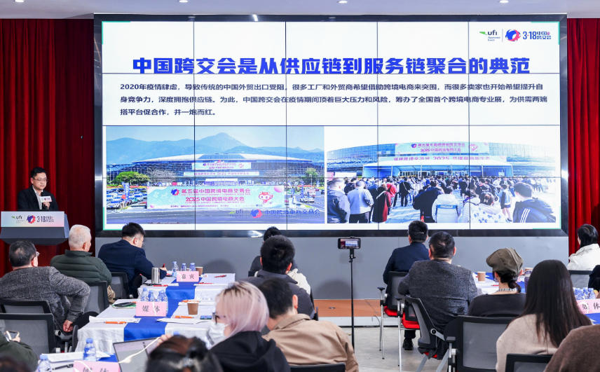 春潮启幕,跨境先行。为助燃马年开春的出海热情,2月28日,第六届中国跨境电商交易会(以下简称“跨交会”)在福州召开媒体通气会,全方位解读行业新趋势,披露展会创新亮点。福建省商务厅、福州市商务局等政府部门和福建省电子商务促进会及相关媒体出席会议。
