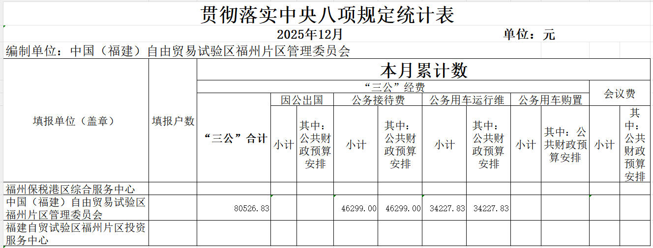 2025年12月“三公”经费支出情况