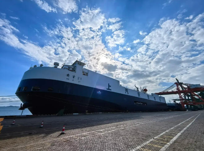 9月28日,福州港江阴港区再度展现其作为国产汽车出口核心枢纽的强劲实力。在1号泊位现场,随着“安吉21”号滚装船平稳靠泊,1222辆崭新的奇瑞捷途汽车在此高效完成了集结、查验及滚装作业。