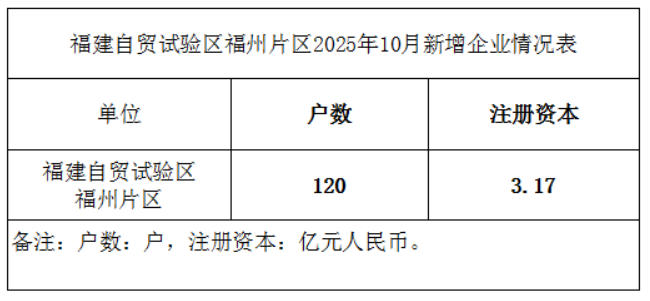 福建自贸试验区福州片区2025年10月新增企业情况表