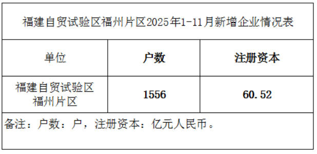 福建自贸试验区福州片区2025年1-11月新增企业情况表