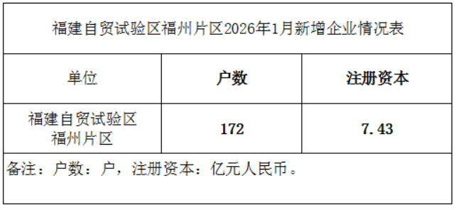 福建自贸试验区福州片区2026年1月新增企业情况表