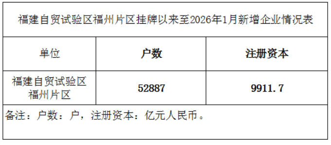 福建自贸试验区福州片区挂牌以来至2026年1月新增企业情况表